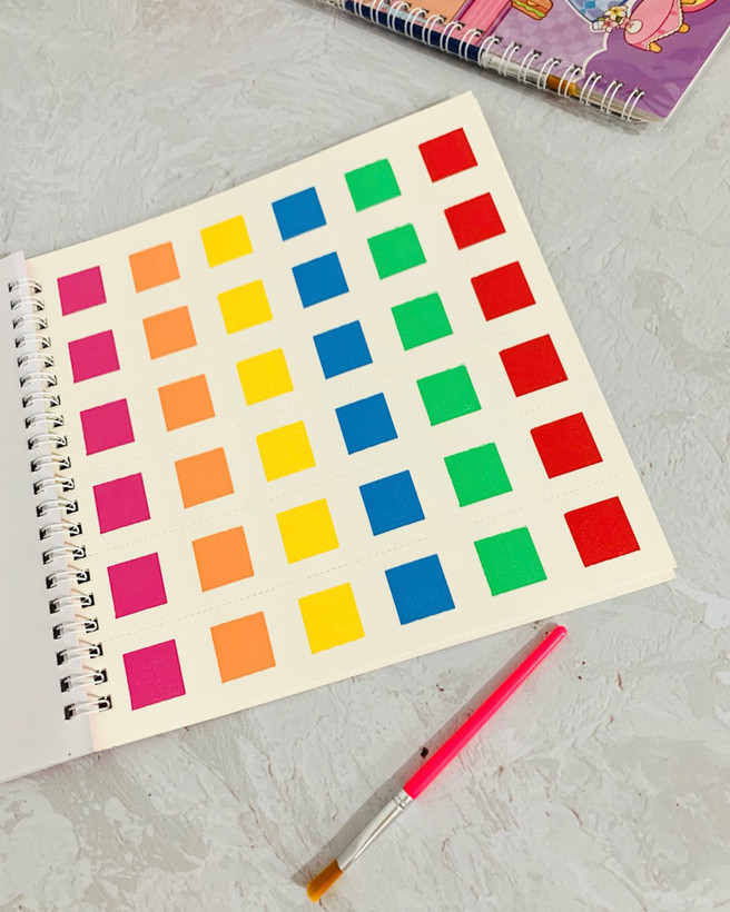 رنگ امیزی داره همراه یک عدد قلم مو که با ابرنگی که داخل دفتر هست میتواند رنگ امیزی کند