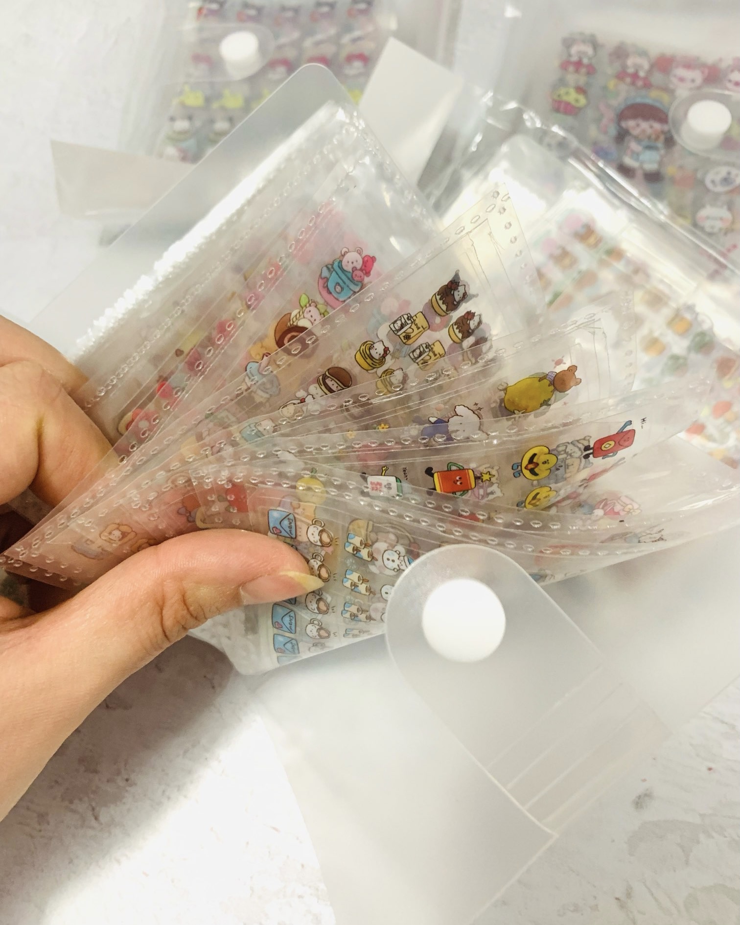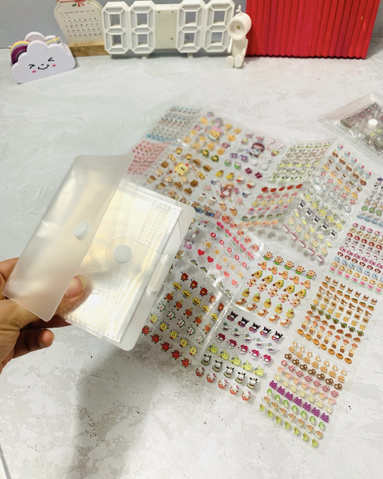 یه کیف داره که مثل جا کارتی میتوتی ورق های استیکر داخلش بذاری