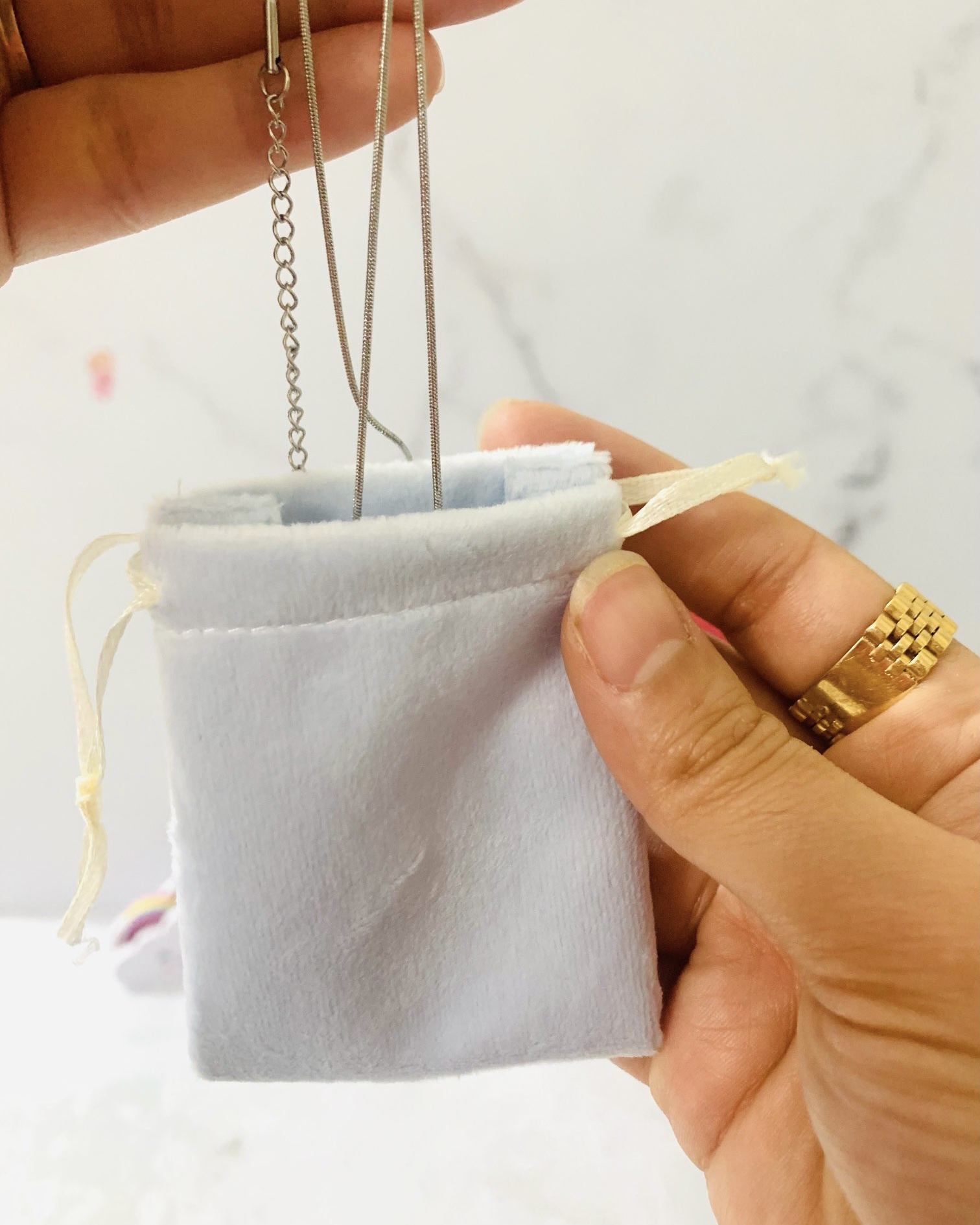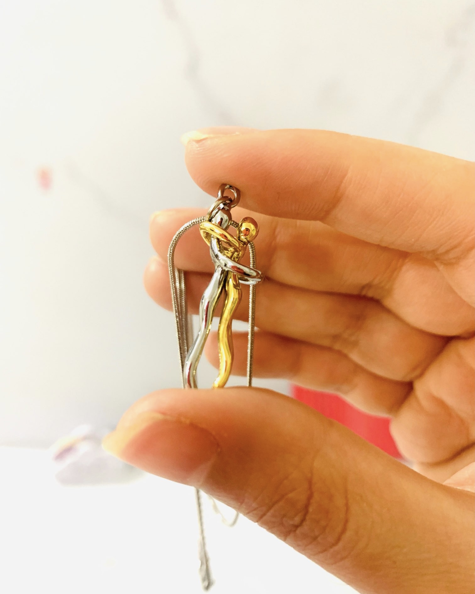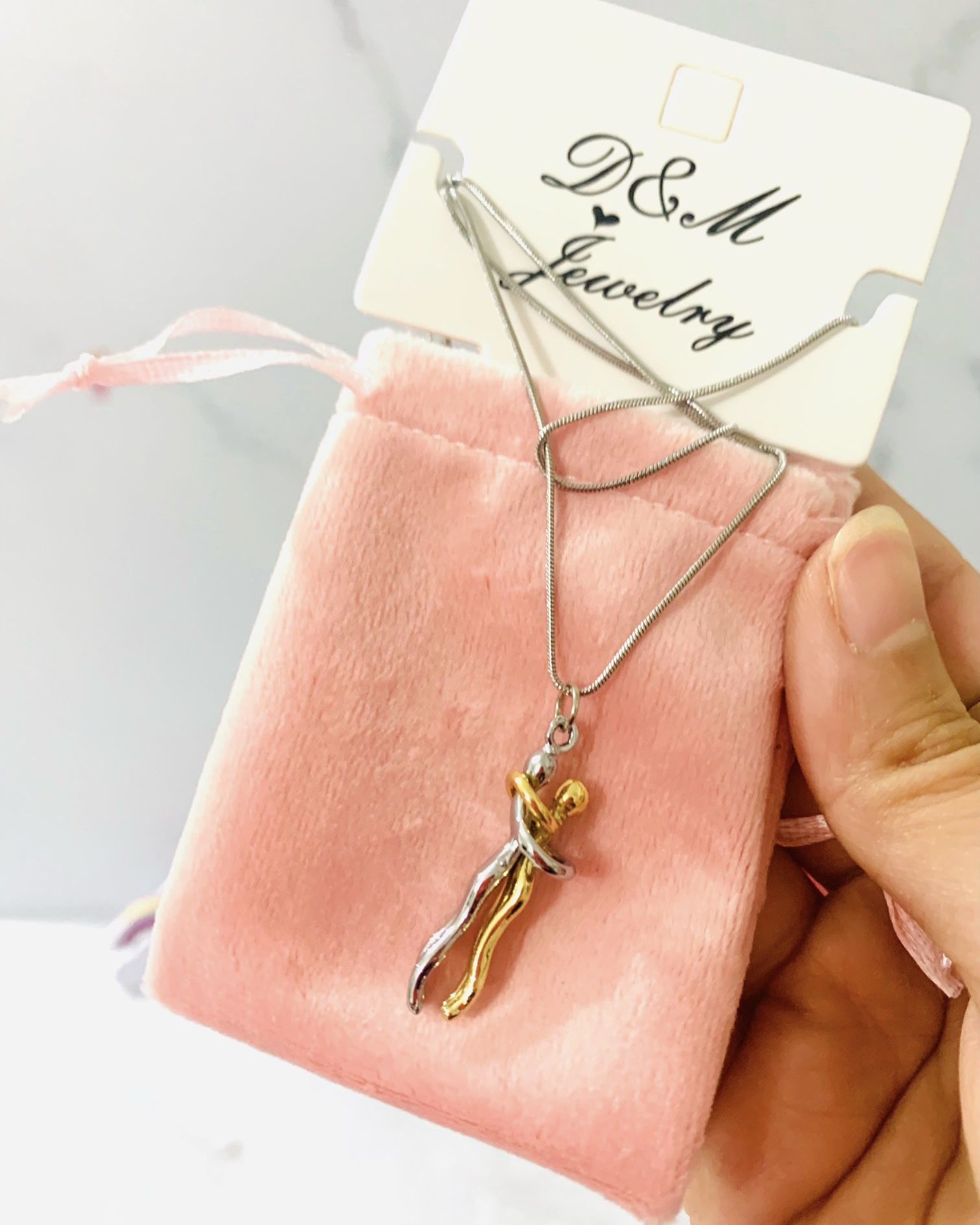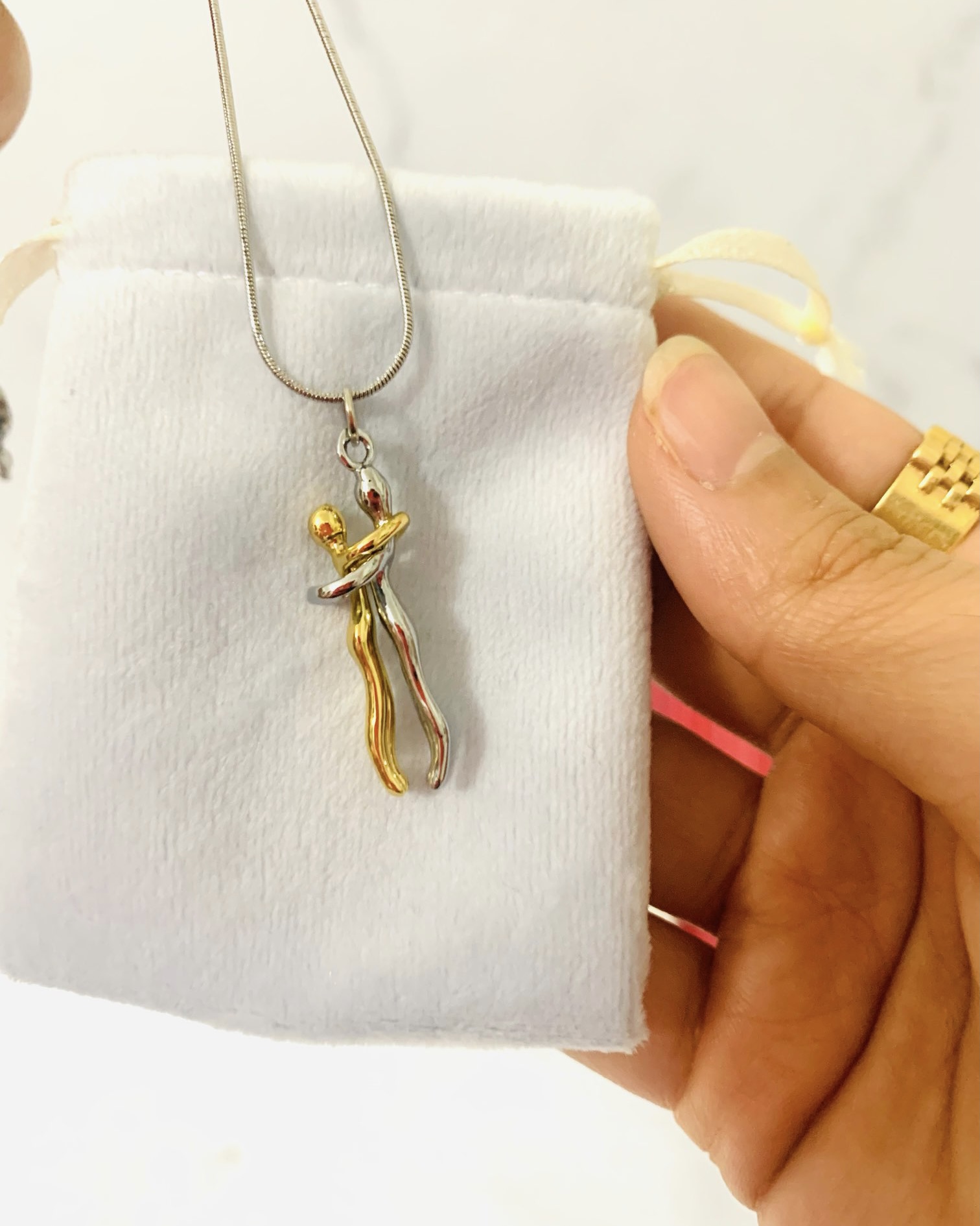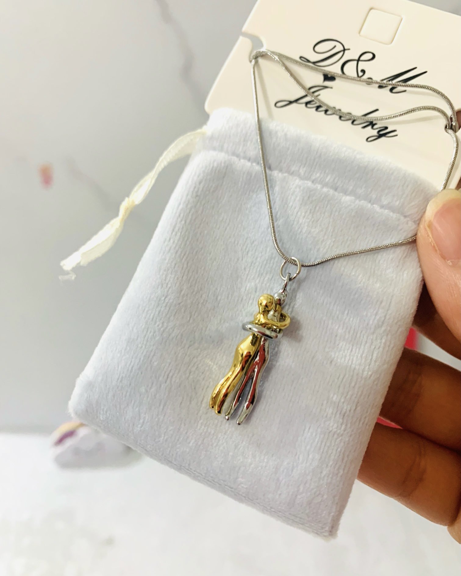 گردنبند آغوش ، استیل زنجیر مدل ماری با کیفیت بهترین هدیه که میتونی عشقت خوشحال کنی ، کیسه ی مخملی آبی و صورتی