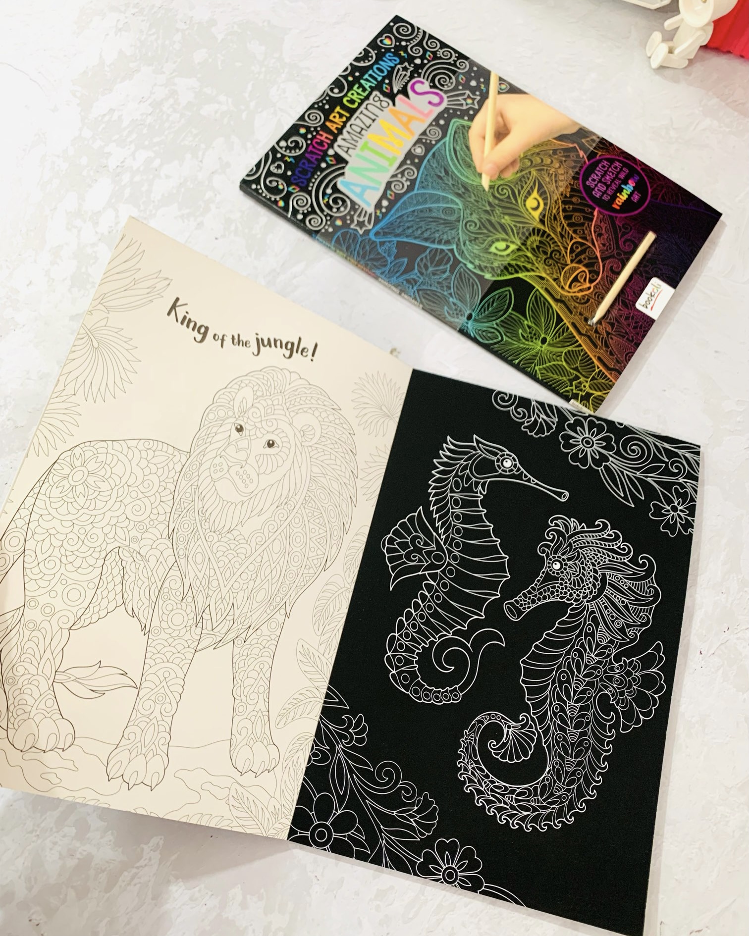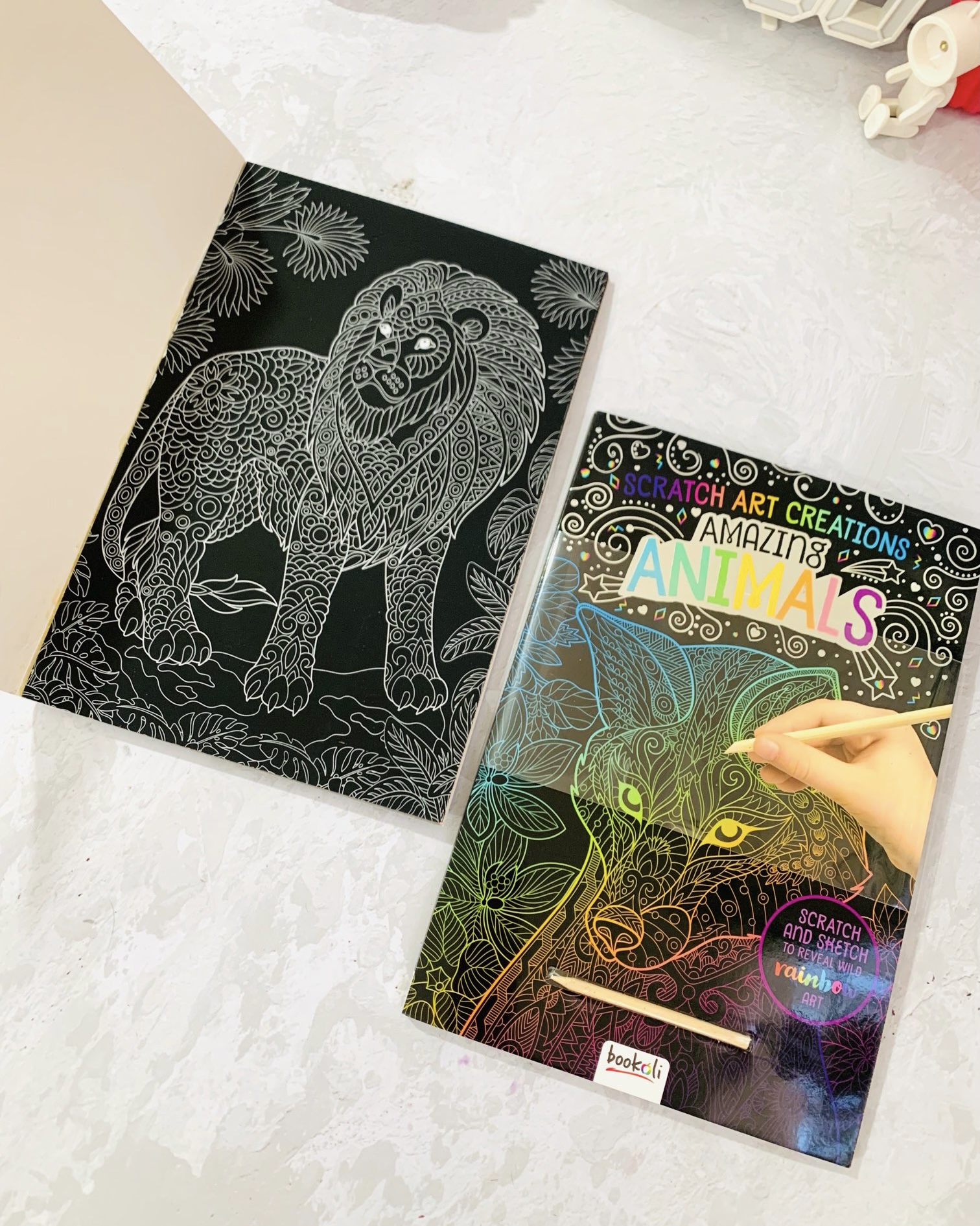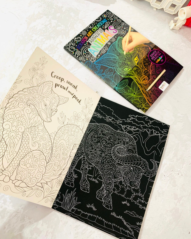 به دو مدل حیوانات هر برگ بطور ظریف نقاشی شده که باید خیلی با دقت خراش دهید تا یک رنگ امیزی عالی به دست بیاد